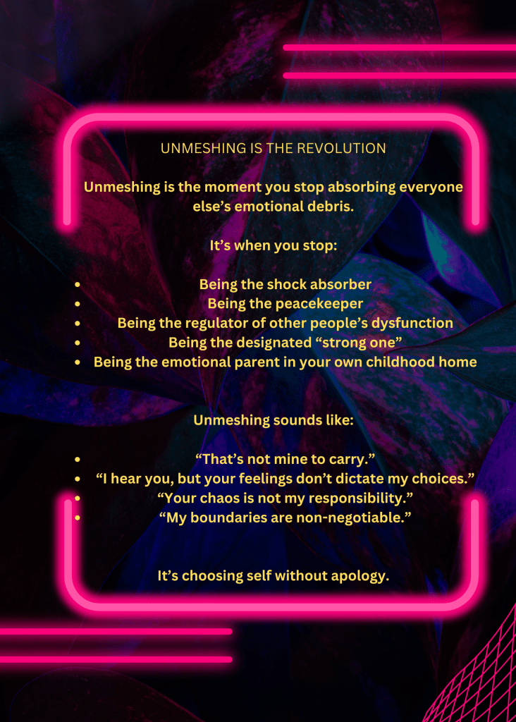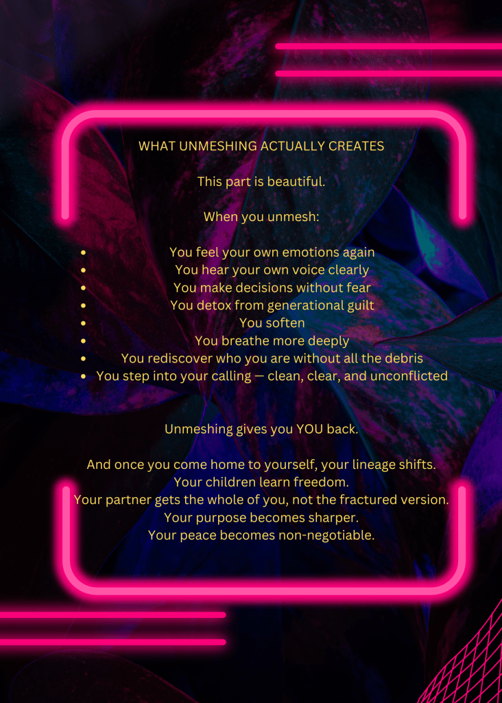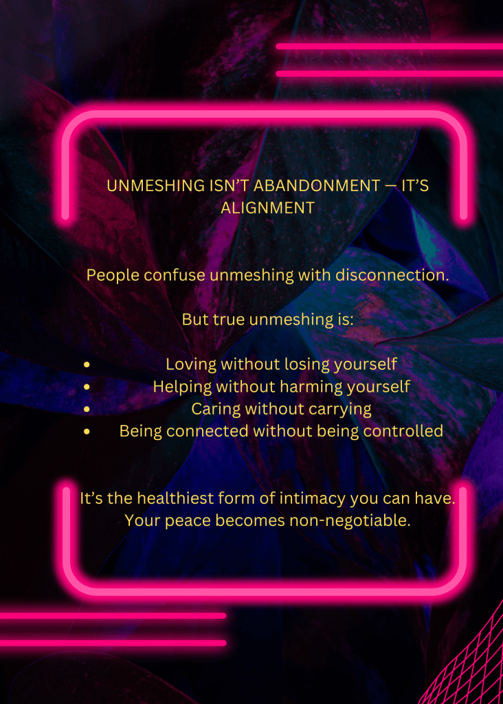 Unmeshing is the sacred process of pulling your identity, your emotions, your choices, and your purpose back out of other people’s hands.